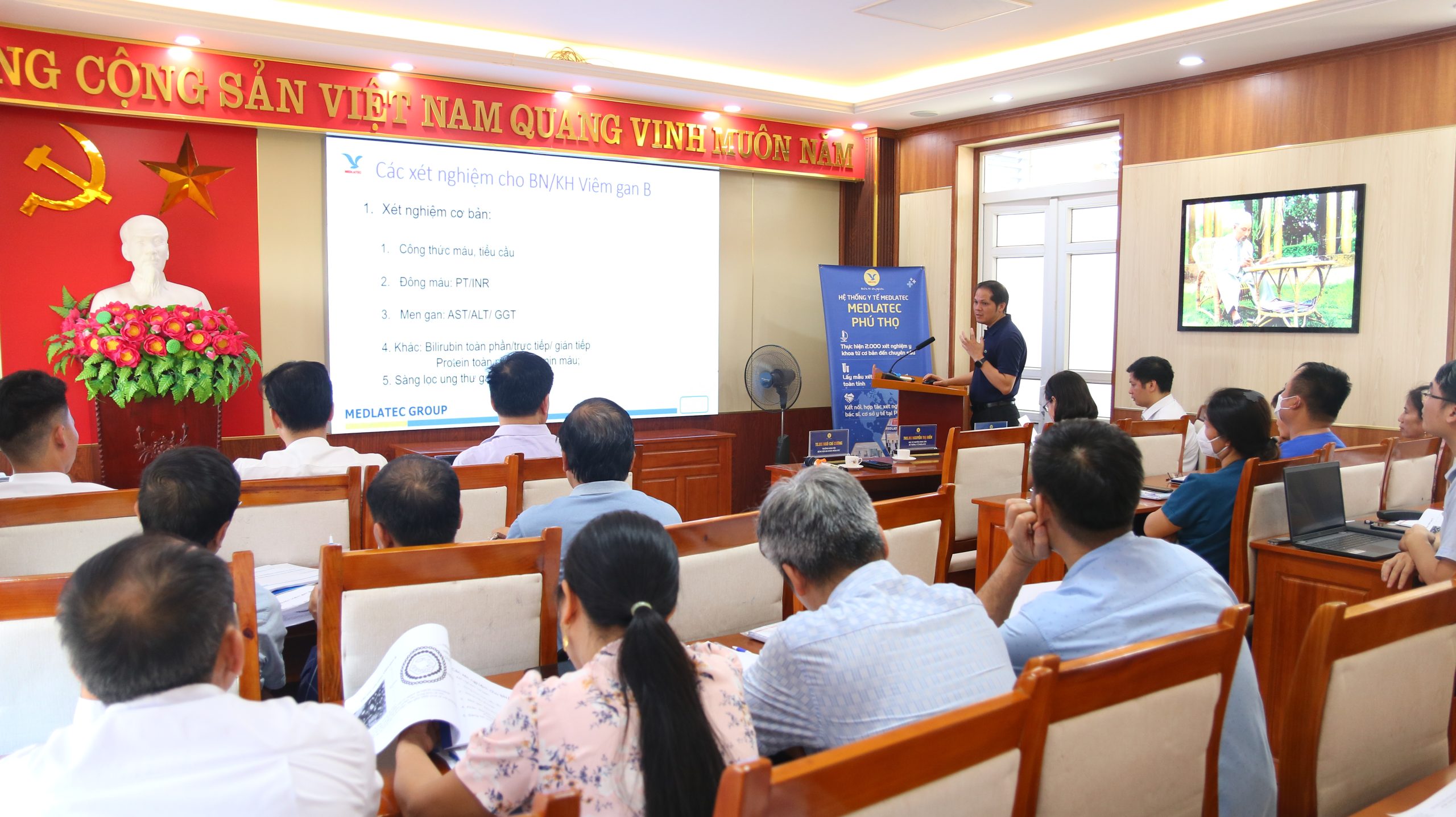 Tham gia truyền tải những kiến thức cho lớp tập huấn còn có các đồng chí là TS, BS của Bệnh viện MEDLATEC. Cùng đông đảo các học viên là Bác sĩ tại các khoa, phòng TTYT huyện và TYT các xã, thị trấn.