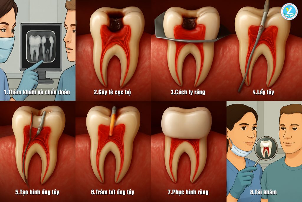 Quy trình điều trị tủy răng chuẩn y khoa bao gồm các bước thăm khám, gây tê, cách ly, lấy tủy, tạo hình, trám bít và tái khám. Các bước này nhằm loại bỏ hoàn toàn phần tủy bị viêm, nhiễm trùng, ngăn ngừa tái phát và bảo tồn răng thật. Quy trình chi tiết: Thăm khám […]