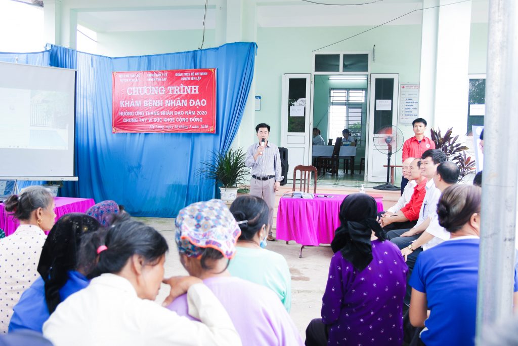 Phát biểu tại chương trình, Ông Phạm Hồng Hải – Phó Giám đốc Trung tâm Y tế huyện chia sẻ: “Mong muốn mang lại sức khỏe toàn diện cho cộng đồng nói chung và người dân tại địa bàn xã nói riêng, thay mặt các cán bộ và nhân viên Y tế tại Trung tâm, chúng tôi cam kết sẵn sàng khám chữa bệnh, tư vấn sức khỏe và phục vụ tốt nhất cho người dân. Tại đây, chúng tôi thực hiện khám lâm sàng, siêu âm, điện tim và cấp phát thuốc cho bà con. Trong trường hợp bà con nào bị bệnh nặng cần phải điều trị hoặc cần làm thêm các cận lâm sàng chuyên sâu khác để chẩn đoán bệnh thì sẽ được xe cứu thương đưa về tận Trung tâm.” Ông cũng thay mặt toàn thể cán bộ Trung tâm Y tế cảm ơn Hội Chữ Thập đỏ và các nhà tài trợ đã cùng phối hợp tổ chức chương trình nhân đạo mang đậm tính nhân văn này.