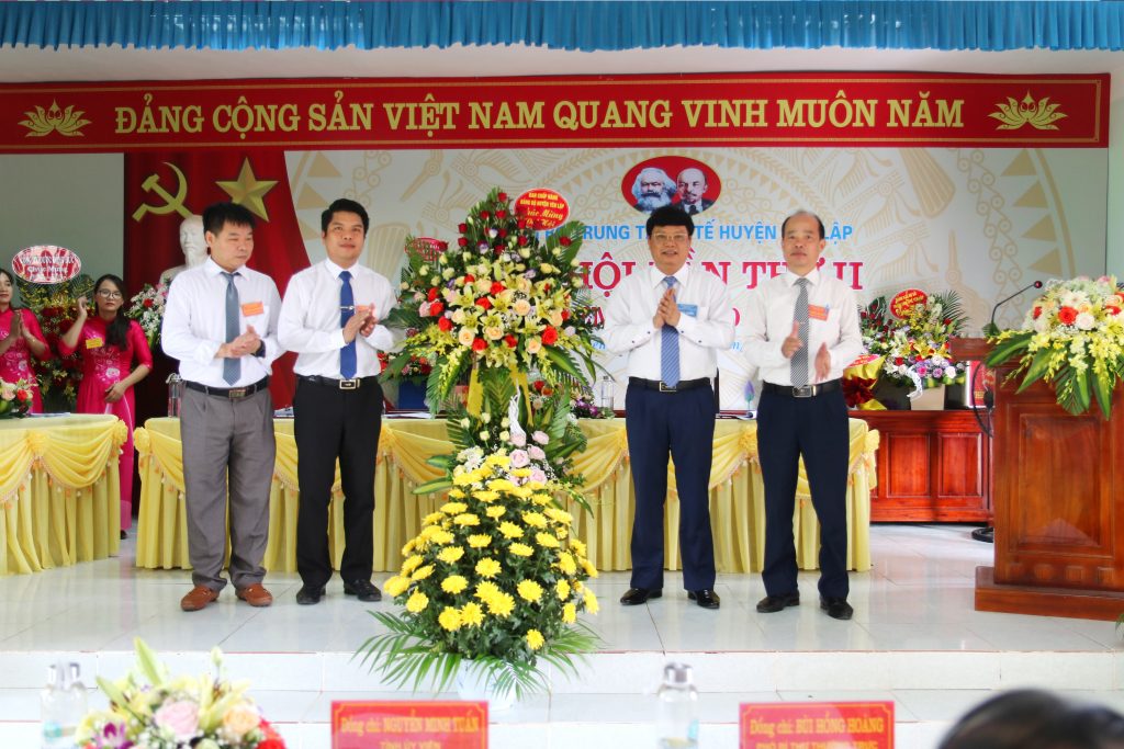 Đồng chí Nguyễn Minh Tuấn – Tỉnh Ủy viên – Bí Thư Huyện ủy thay mặt Thường trực Huyện ủy tặng hoa chúc mừng Đại hội Đảng bộ Trung tâm Y tế