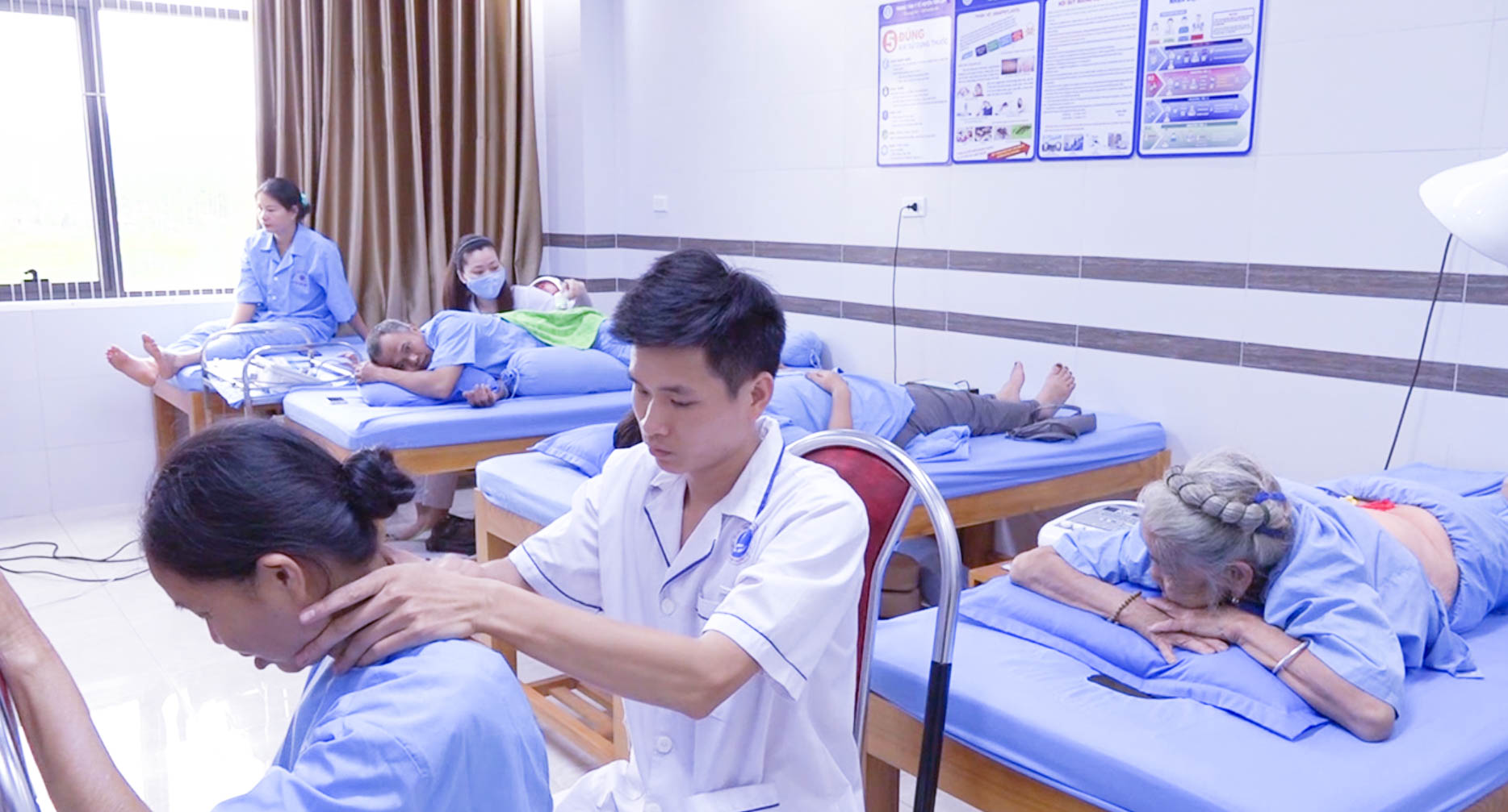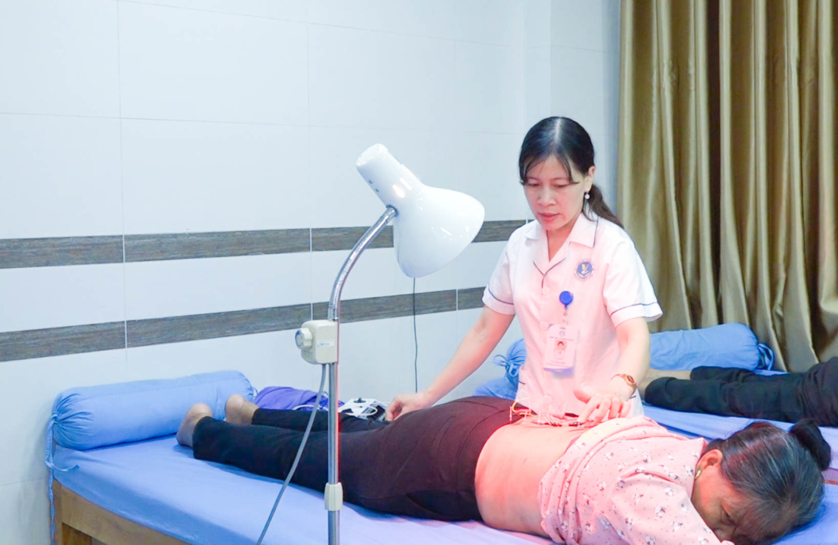 Điều dưỡng thực hiện điện châm kết hợp chiếu đèn hồng ngoại cho người bệnh