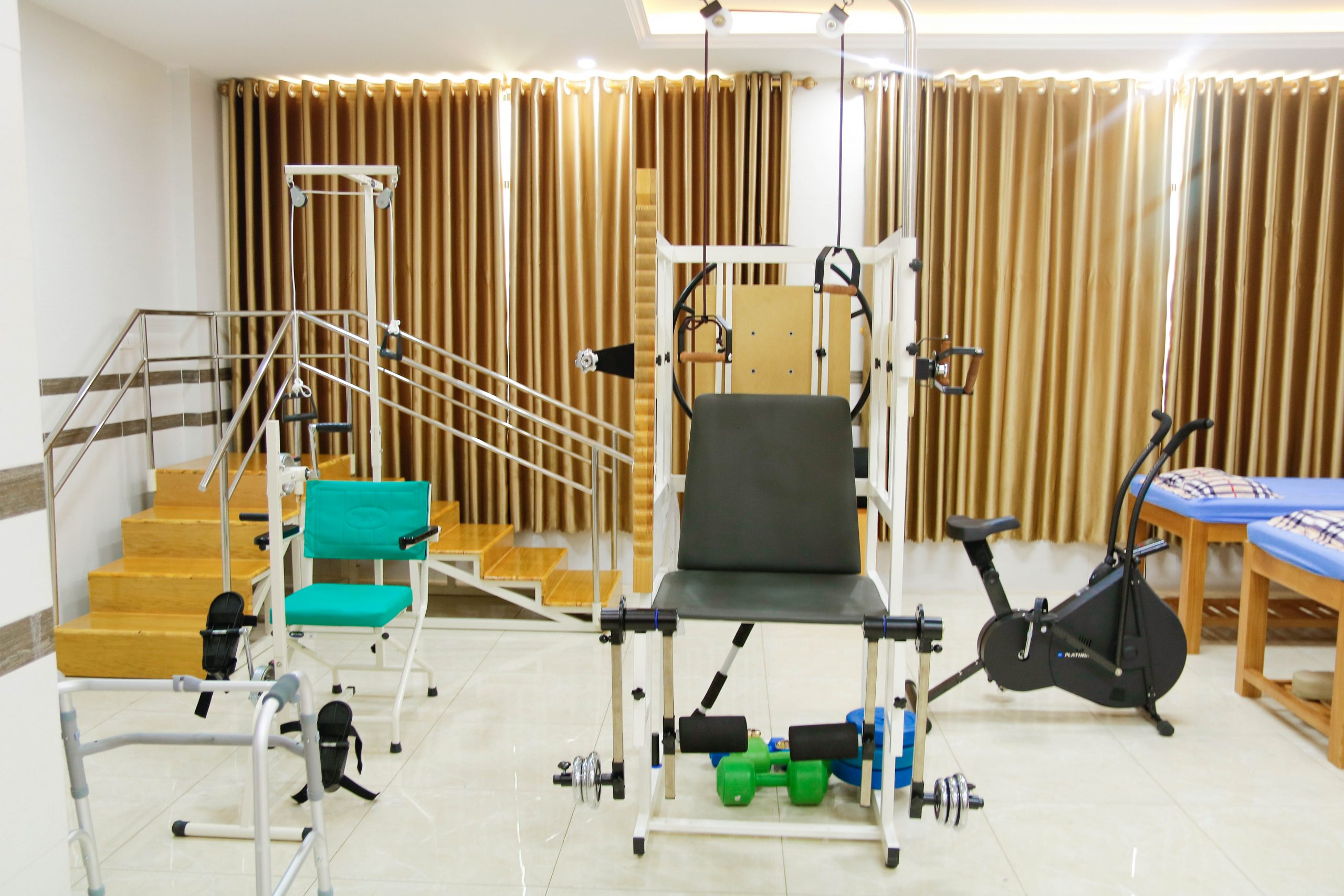 Các dụng cụ, trang thiết bị tại phòng tập phục hồi chức năng