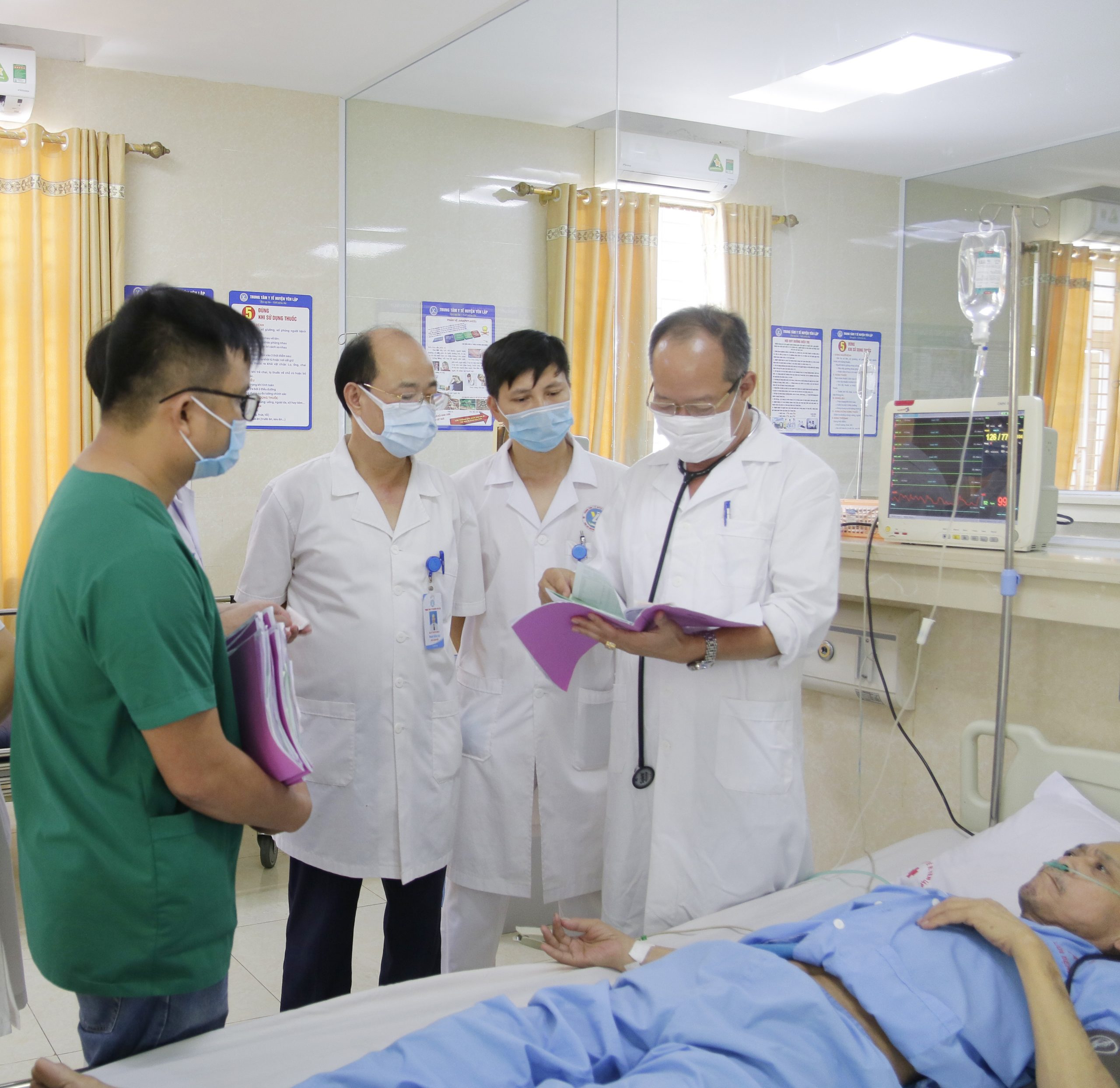 Thầy thuốc ưu tú, Bs CKII Ngô Hữu Hà trực tiếp thăm khám cho người bệnh điều trị nội trú tại khoa Cấp cứu, Hồi sức tích cực và Chống độc