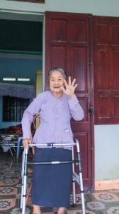 Cụ C tỉnh táo, khỏe mạnh và phấn khởi tập đi sau khi ra viện theo sự hướng dẫn của bác sỹ