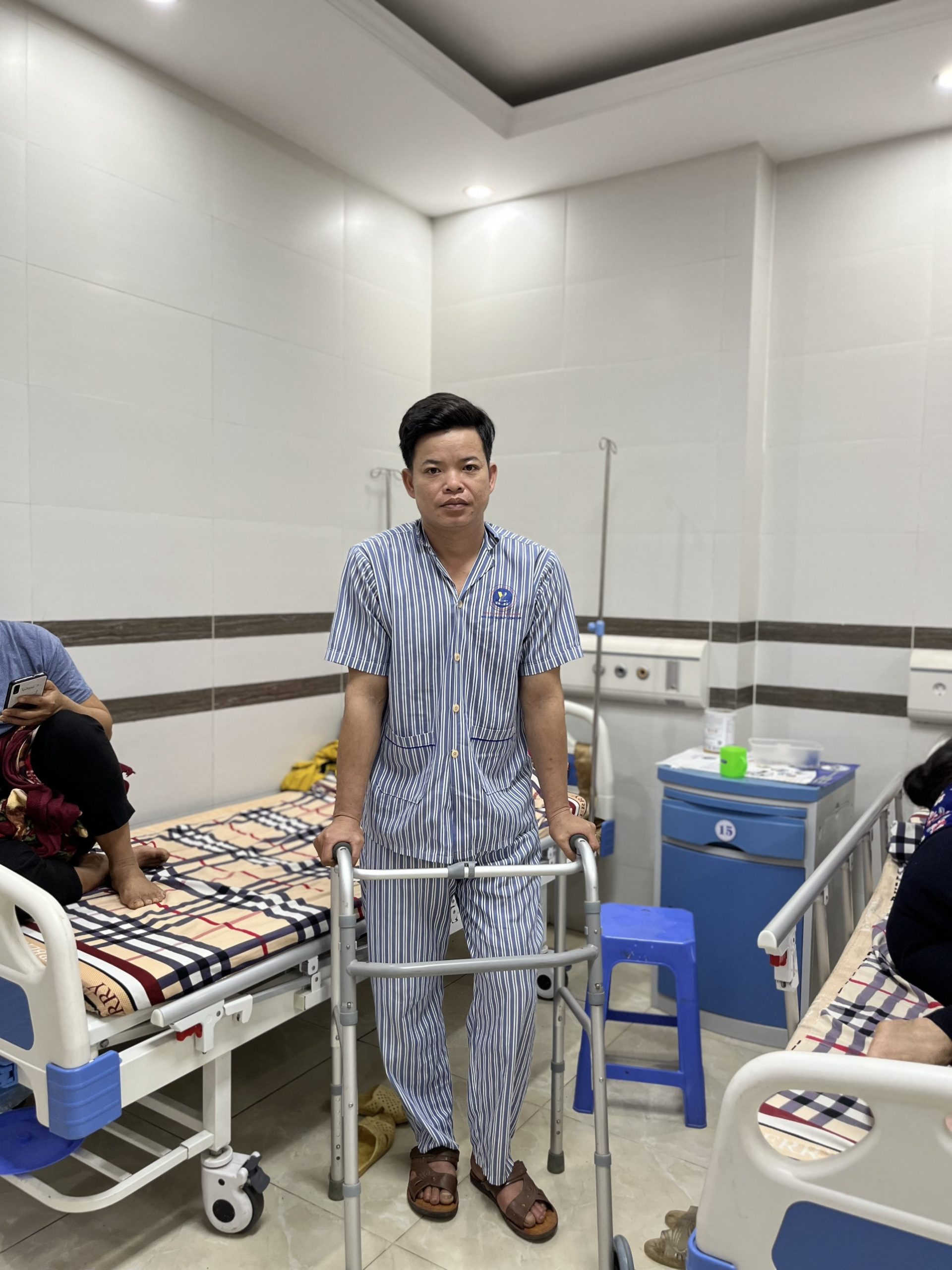 Sau phẫu thuật, người bệnh được theo dõi hồi sức, sau khi ổn định được chuyển về điều trị tại khoa Ngoại Tổng hợp – Chuyên khoa. Ngày thứ 2 sau mổ, với sự hỗ trợ của các kỹ thuật viên của khoa YHCT&PHCN, người bệnh đã tập đi với khung chữ U. Sau 12 ngày điều trị và tập phục hồi chức năng vận động, người bệnh đã tiến triển tốt và được xuất viện.