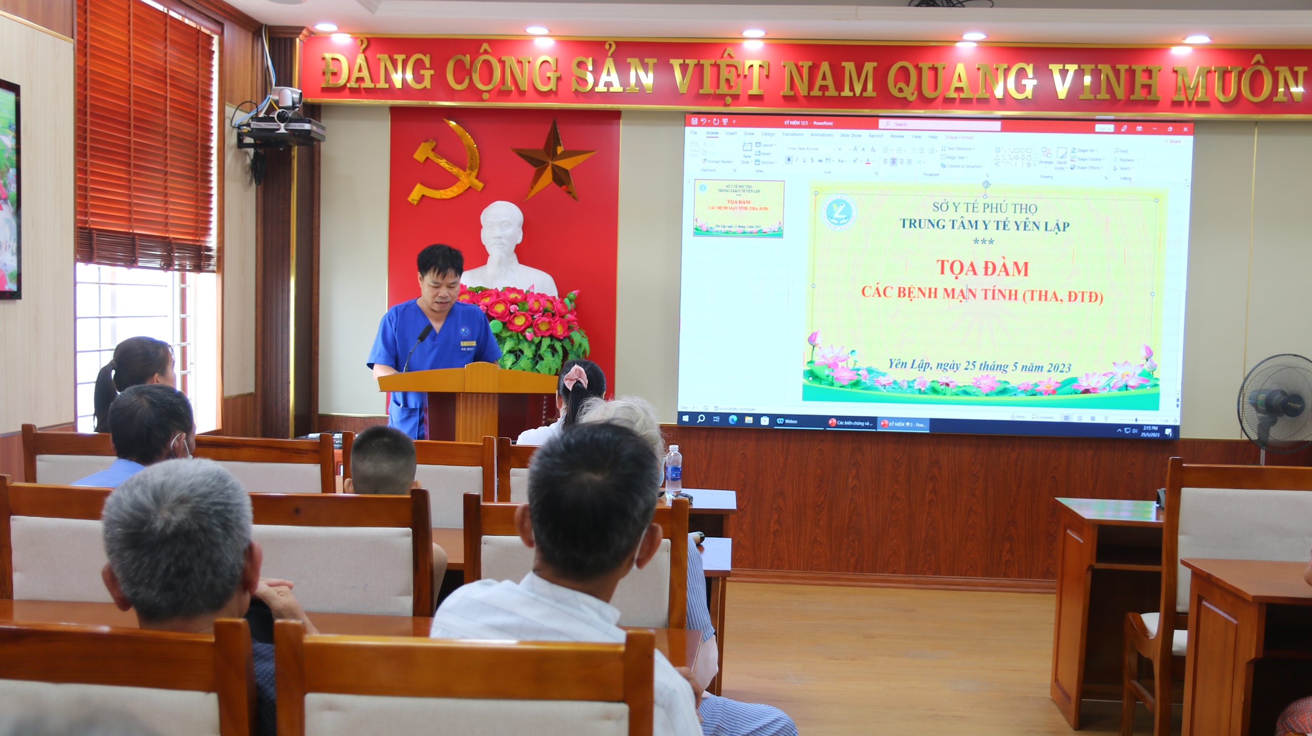 Nhằm tiếp tục hưởng ứng “Chiến lược Quốc gia phòng, chống tăng Huyết áp, Tim mạch, đái Tháo đường…. và các bệnh không lây nhiễm khác giai đoạn 2015 – 2025″, ngày 25/5/2023, TTYT huyện Yên Lập tổ chức buổi ” Tọa đàm tư vấn cách phòng, chống bệnh tăng Huyết áp, đái Tháo đường”.