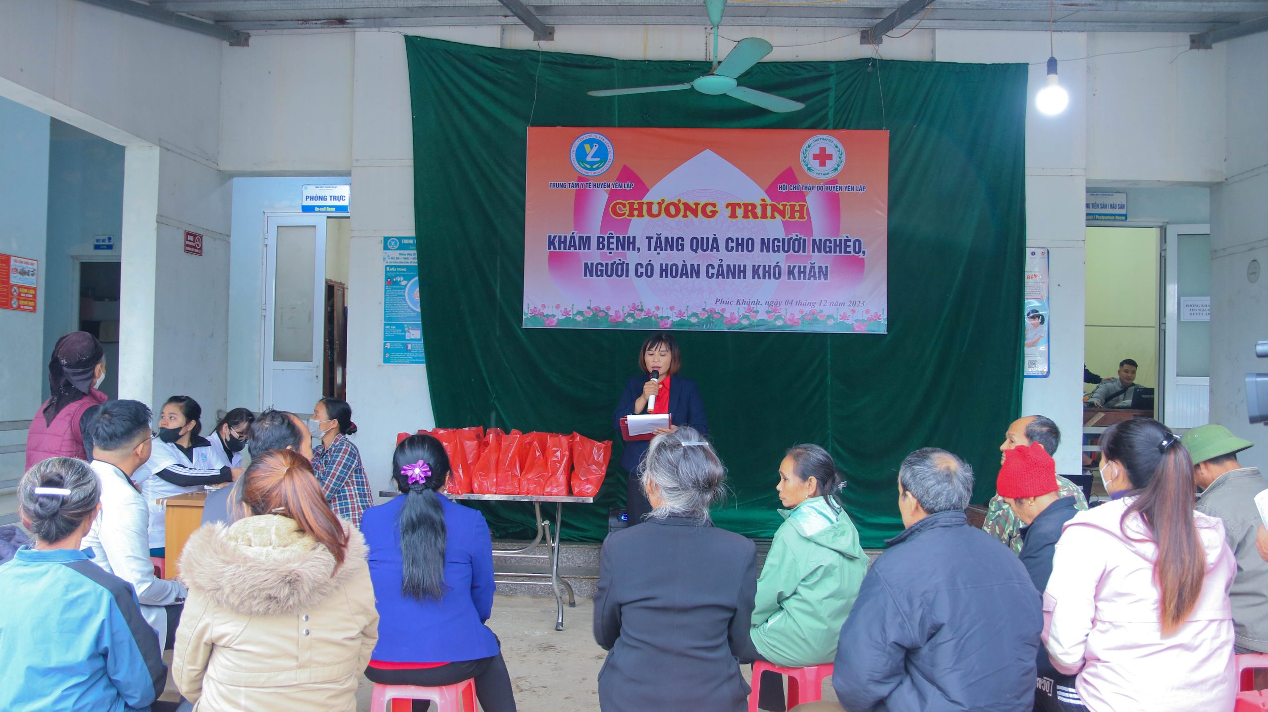 Nhằm mang lại ý nghĩa thiết thực, góp phần chăm sóc sức khỏe ban đầu; tư vấn cách tự chăm sóc, bảo vệ, phòng chống bệnh tật nâng cao sức khỏe và điều trị kịp thời cho các đối tượng có hoàn cảnh khó khăn, gia đình chính sách, từng bước nâng cao chất lượng hoạt động khám, chữa bệnh. Ngày 04/12/2023, Trung tâm Y tế huyện Yên Lập phối hợp với Hội Chữ Thập đỏ tổ chức chương trình khám bệnh, cấp thuốc, tặng quà cho 100 người dân có hoàn cảnh khó khăn thuộc xã Phúc Khánh tại Trạm Y tế xã Phúc Khánh.
