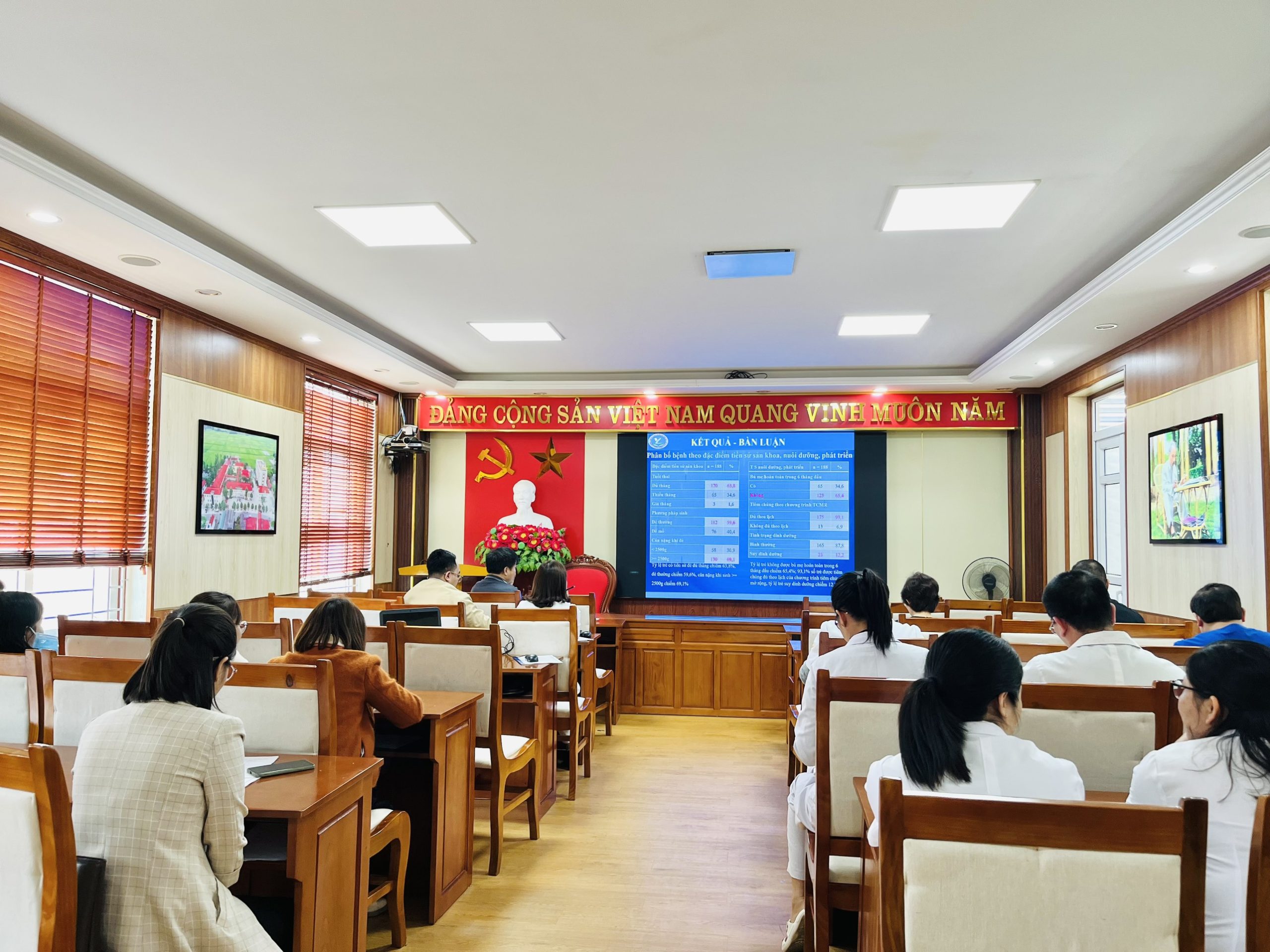 Hội đồng nghiệm thu đề tài nghiên cứu khoa học cấp cơ sở năm 2023 đang làm việc