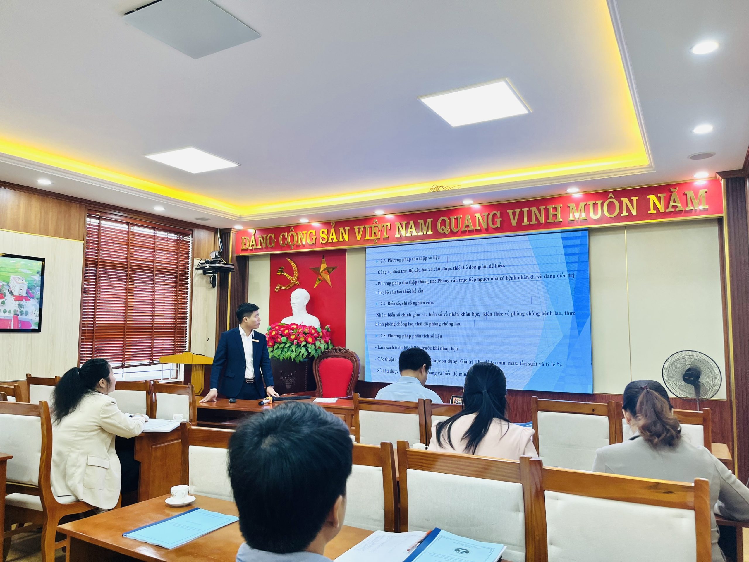 Bác sỹ Bùi Quang Trung báo cáo kết quả nghiên cứu đề tài “Kiến thức, thái độ, thực hành về phòng chống lao của người nhà bệnh nhân lao điều trị ngoại trú tại huyện Yên Lập năm 2023”