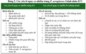 Bệnh nhân ICU có nhiều yếu tố nguy cơ nhiễm, đồng nhiễm P. aeruginosa và nguy cơ kháng thuốc được thể hiện ở Bảng 2 [10]: