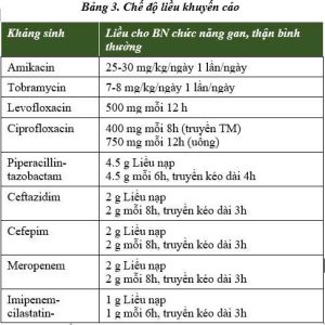 Đối với nhiễm trùng nghi ngờ do P. aeruginosa, chế độ liều cao tối đa được khuyến cáo kết hợp với truyền kéo dài hoặc truyền liên tục. Chế độ liều kháng sinh cho các kháng sinh có tại TTYT khu vực Yên lập thể hiện trong Bảng 3